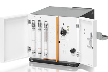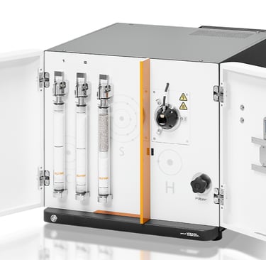 The CHS-r with up to 3 infrared cells is designed for carbon, sulfur and hydrogen measurement over a very wide concentration range. It uses a horizontal resistance furnace with ceramic tube, which operates in a range from 600 °C to 1550 °C.